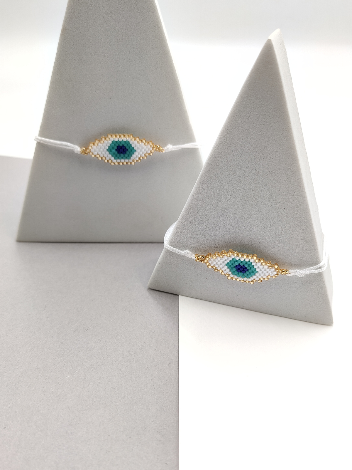 Βραχιόλι με κορδόνι, χάντρες miyuki και σχέδιο μάτι. Δέσιμο μακραμέ για αυξομείωση του μήκους.