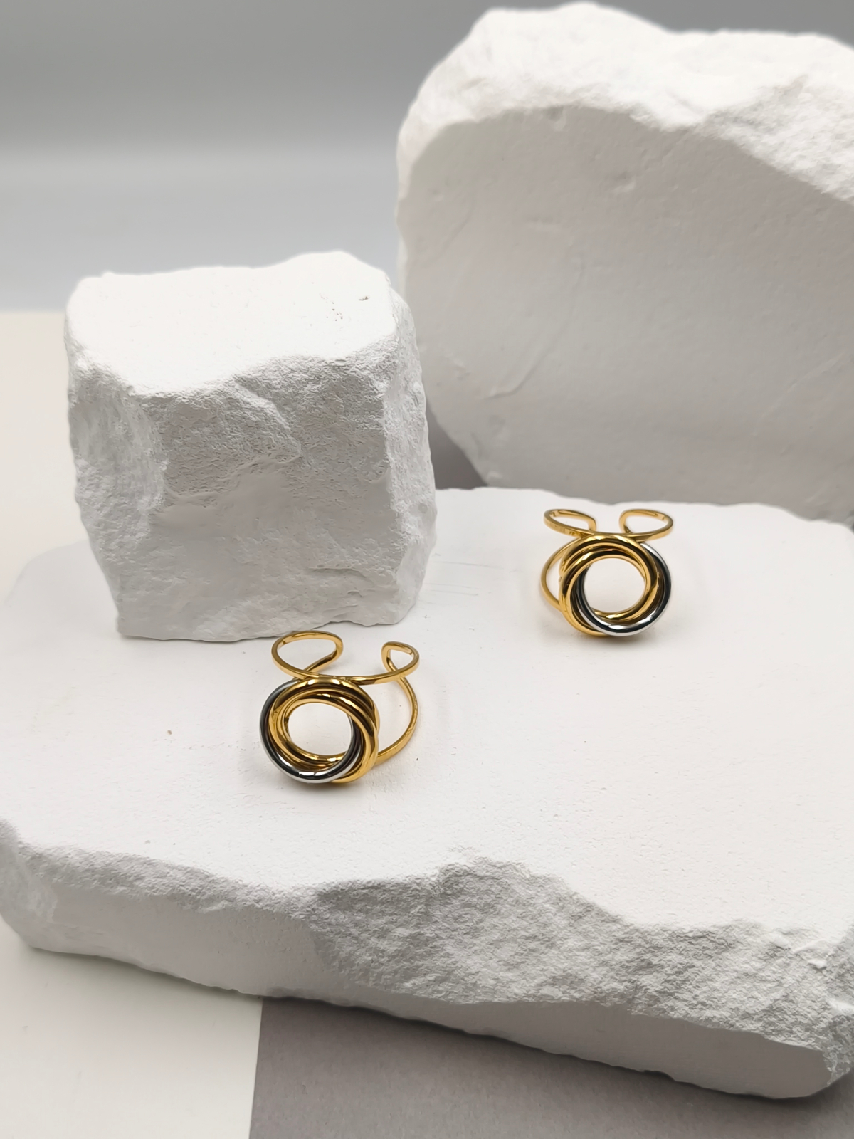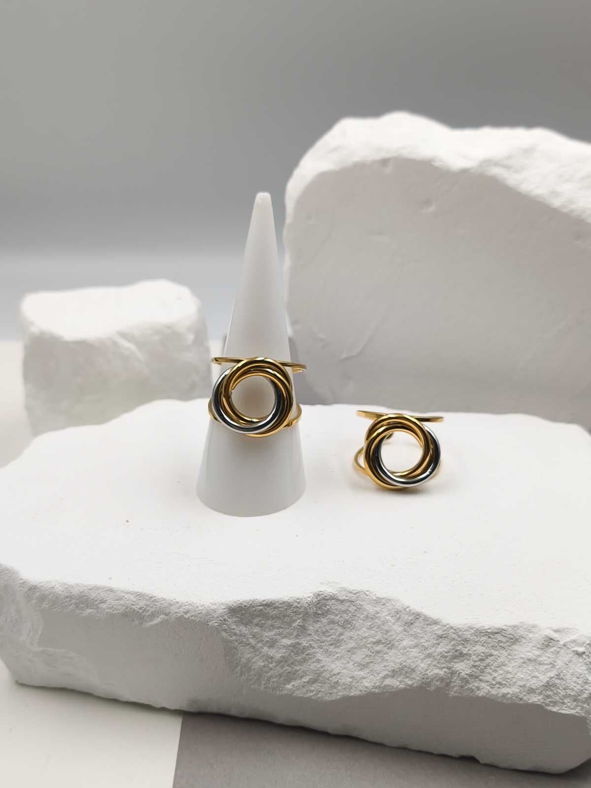 Δαχτυλίδι ατσάλινο με σχέδιο πλεγμένο κύκλο σε χρυσό και ασημί χρώμα.