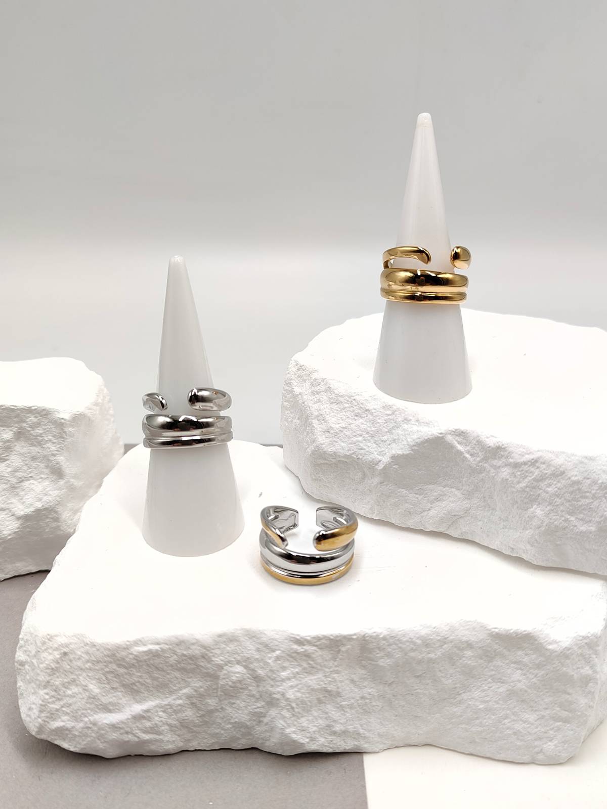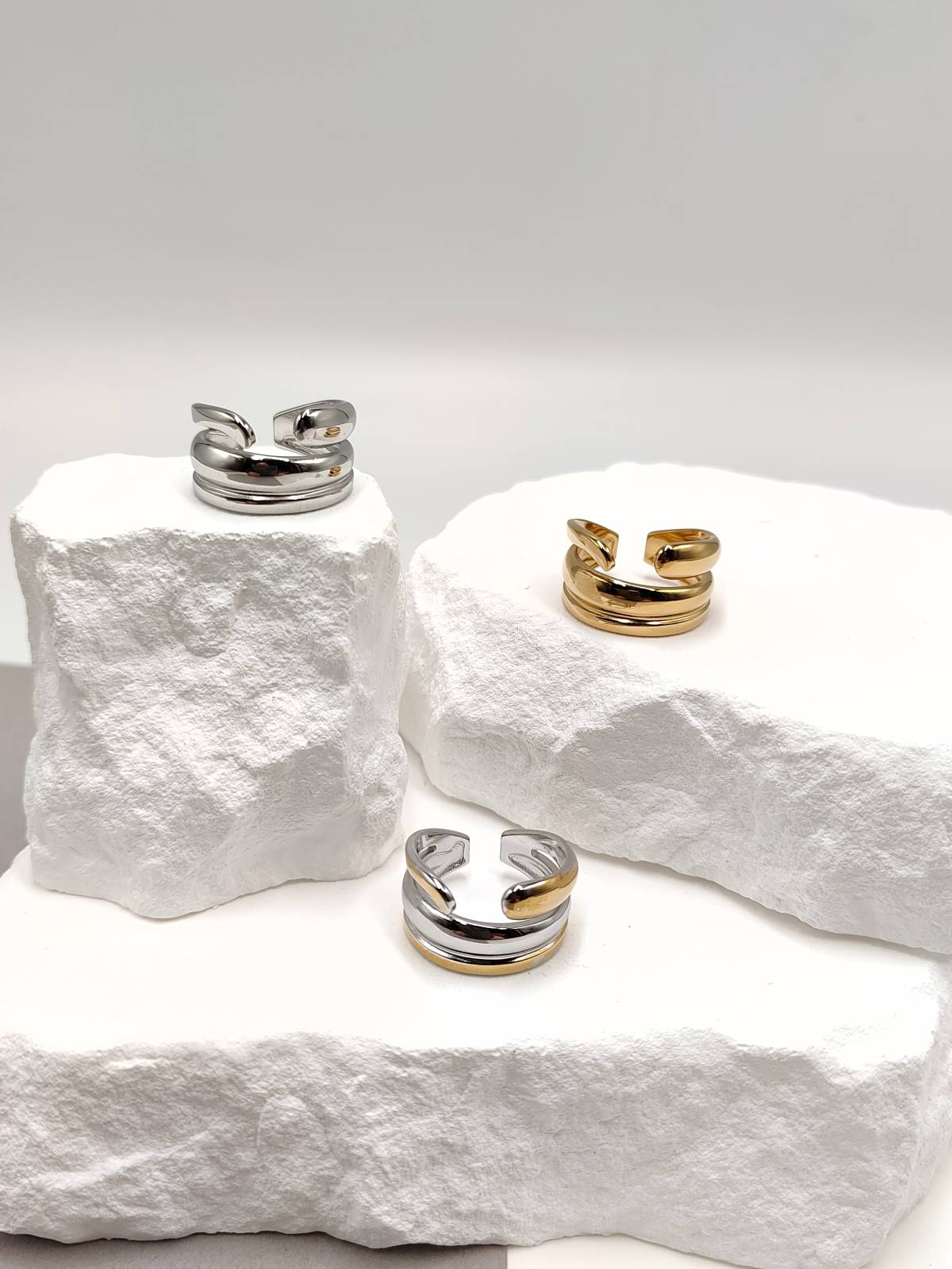 Δαχτυλίδι ατσάλινο τριπλό με άνοιγμα, σε χρυσή, ασημί ή δίχρωμη παραλλαγή.