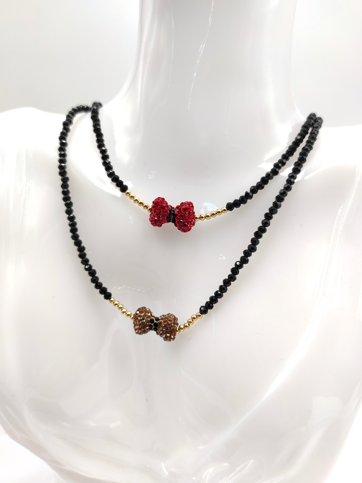 Κολιέ με κρύσταλλα χάντρες & φιόγκο #743074