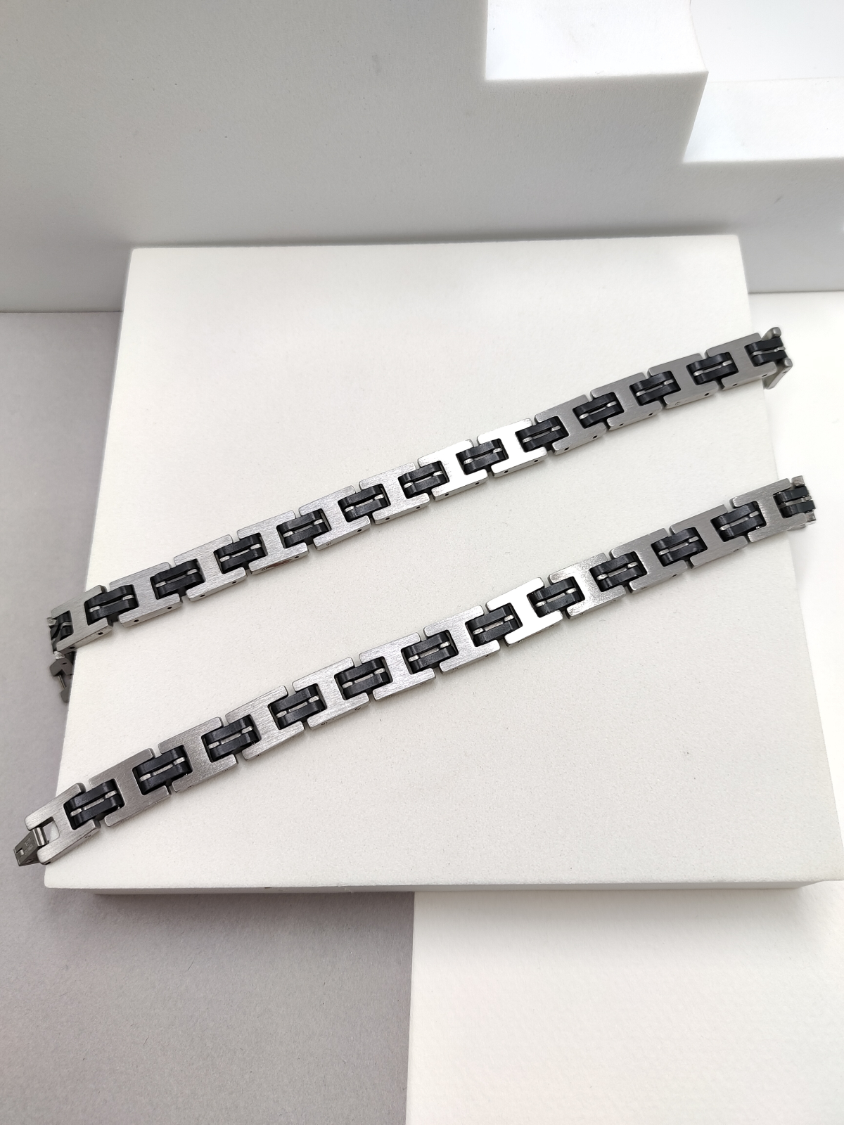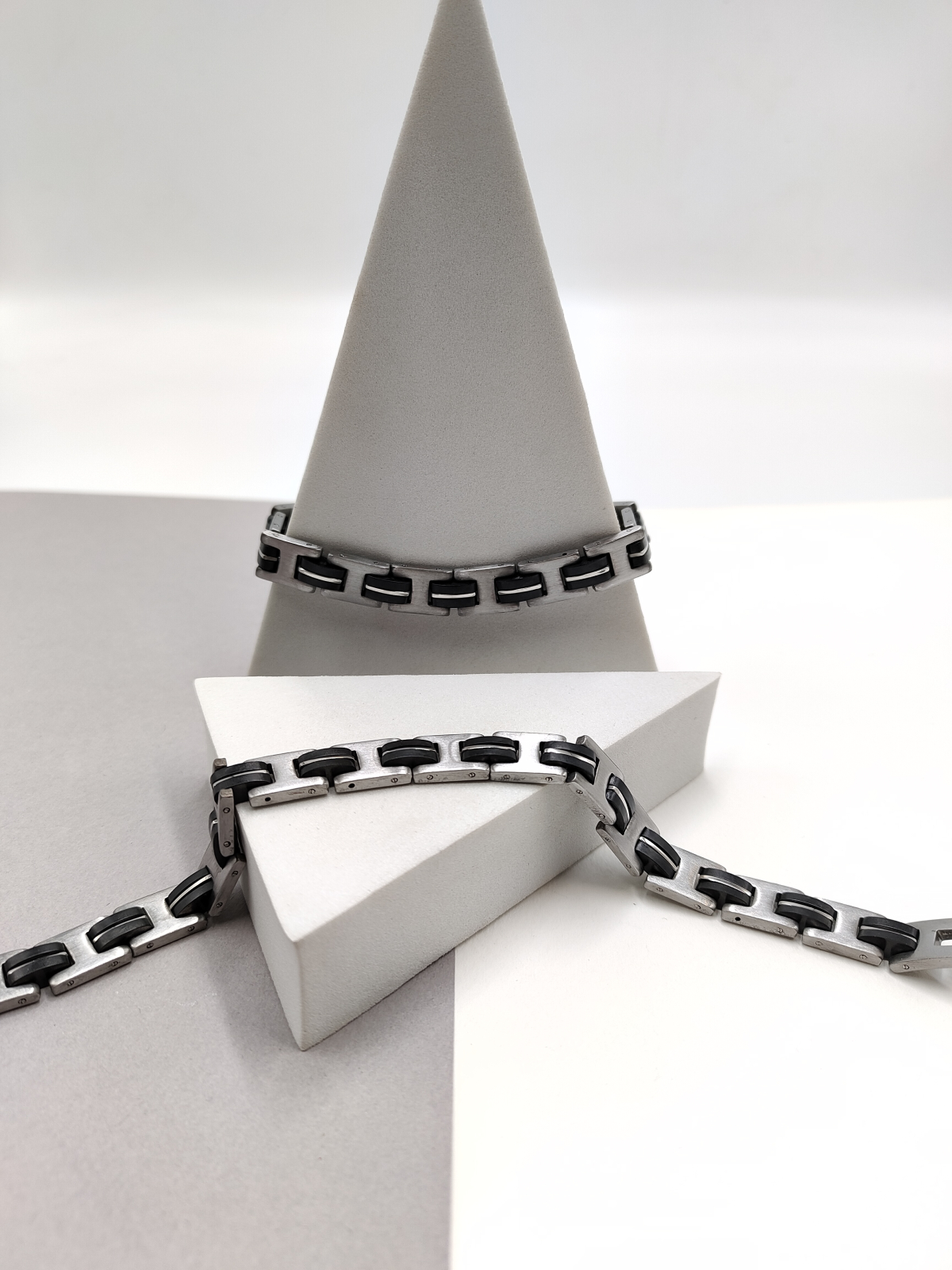 Βραχιόλι με ατσάλινη αλυσίδα σε ασημί και μαύρο χρώμα.