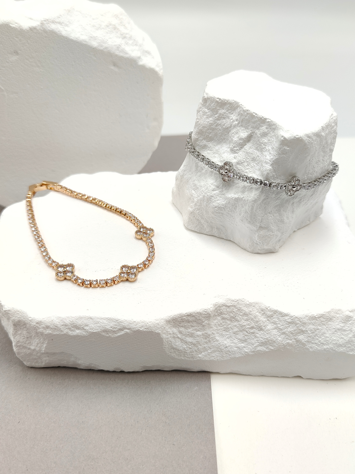 Βραχιόλι με επίχρυση αλυσίδα, μικρούς σταυρούς και στρας, σε χρυσό ή ασημί χρώμα.
