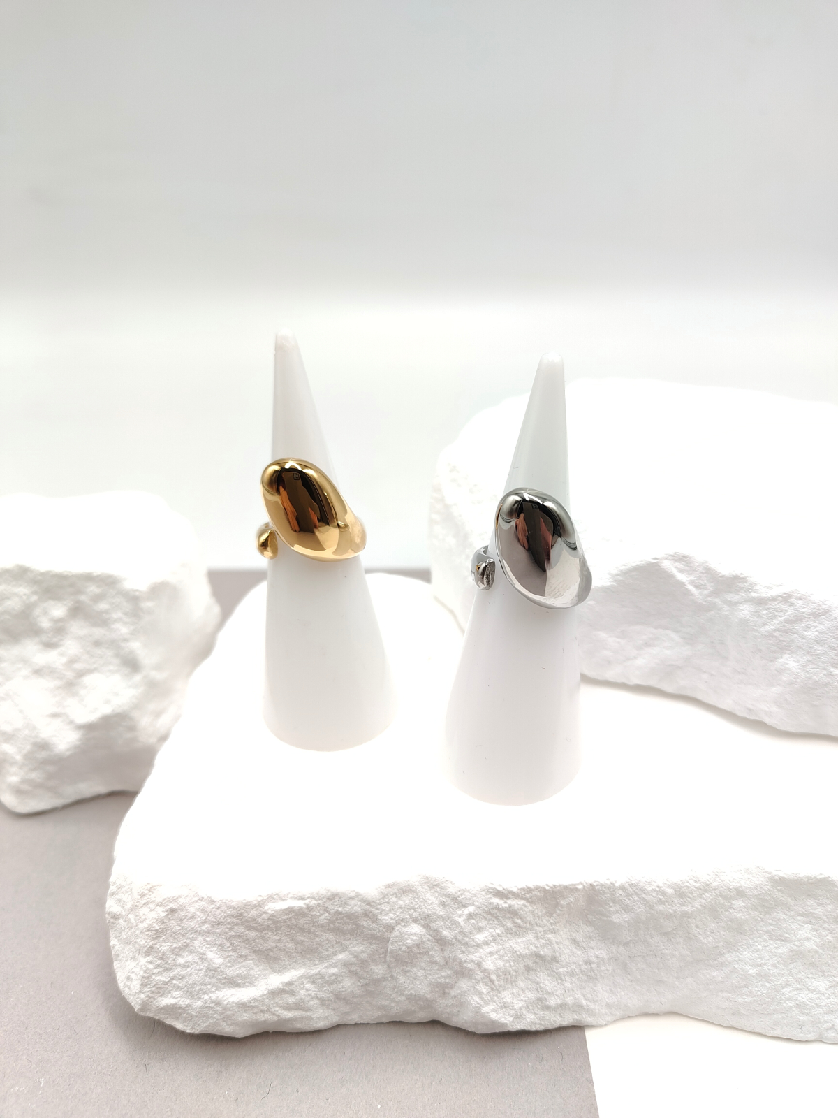 Δαχτυλίδι ατσάλινο σεβαλιέ με άνοιγμα, σε χρυσό ή ασημί χρώμα.