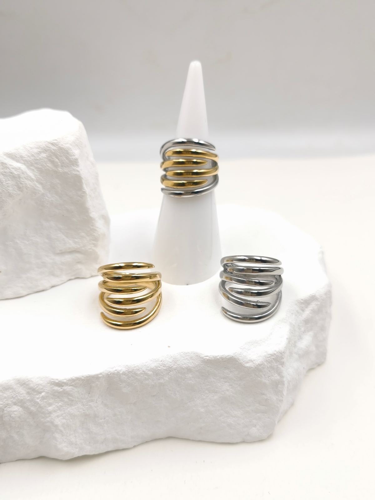 Δαχτυλίδι σεβαλιέ ατσάλινο πολύσειρο, σε χρυσή, ασημί ή δίχρωμη παραλλαγή.