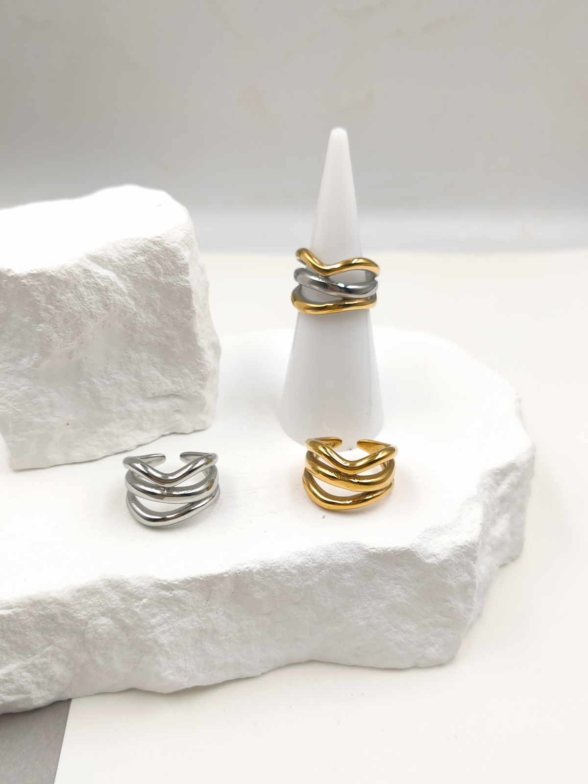 Δαχτυλίδι σεβαλιέ ατσάλινο τριπλό, σε χρυσή, ασημί ή δίχρωμη παραλλαγή.