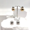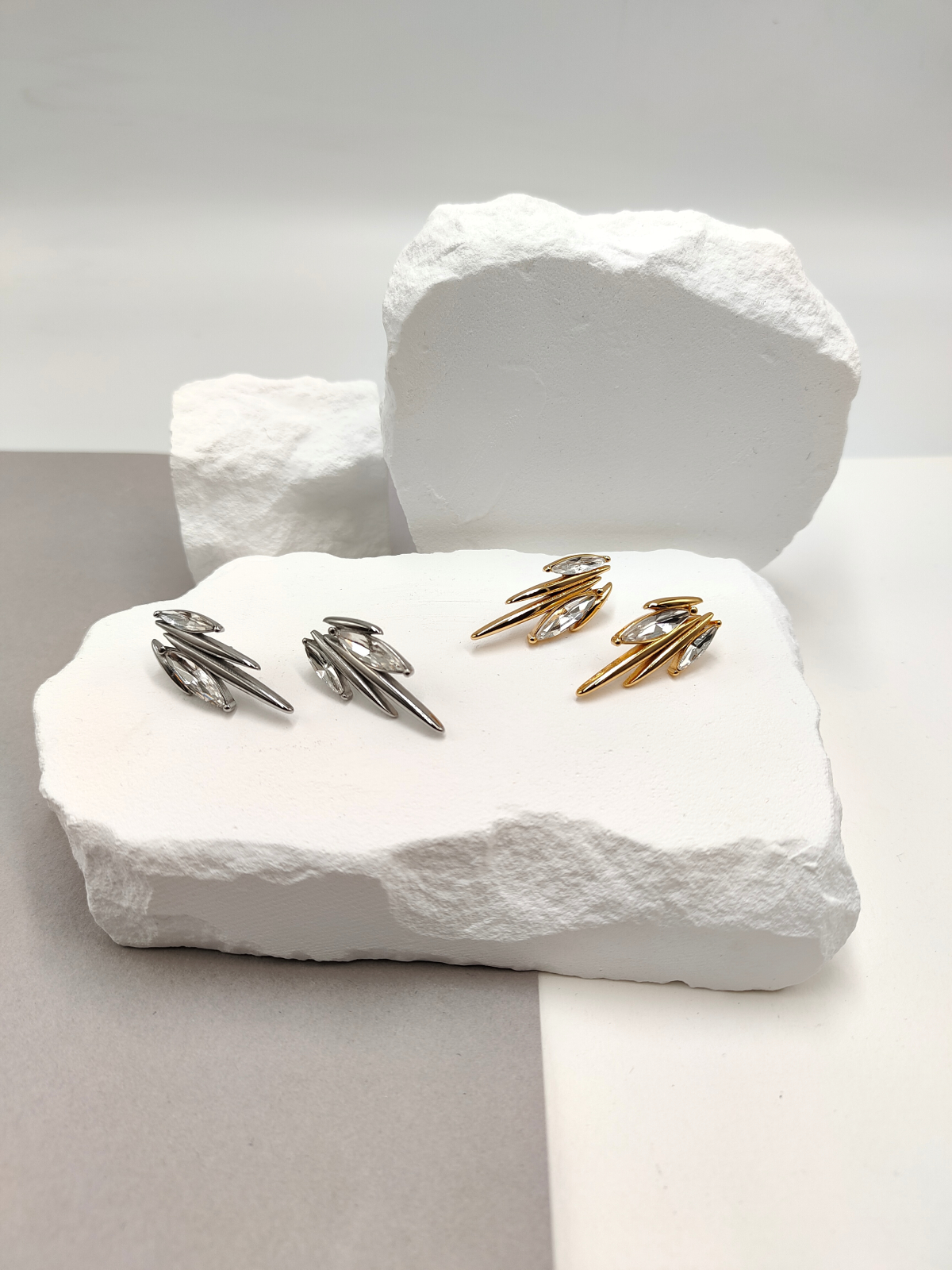 Σκουλαρίκια ατσάλινα με γραμμές και κρύσταλλα, σε χρυσό ή ασημί χρώμα.