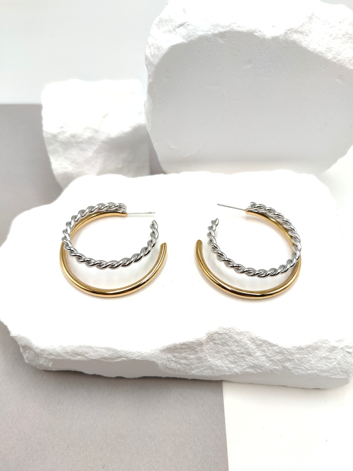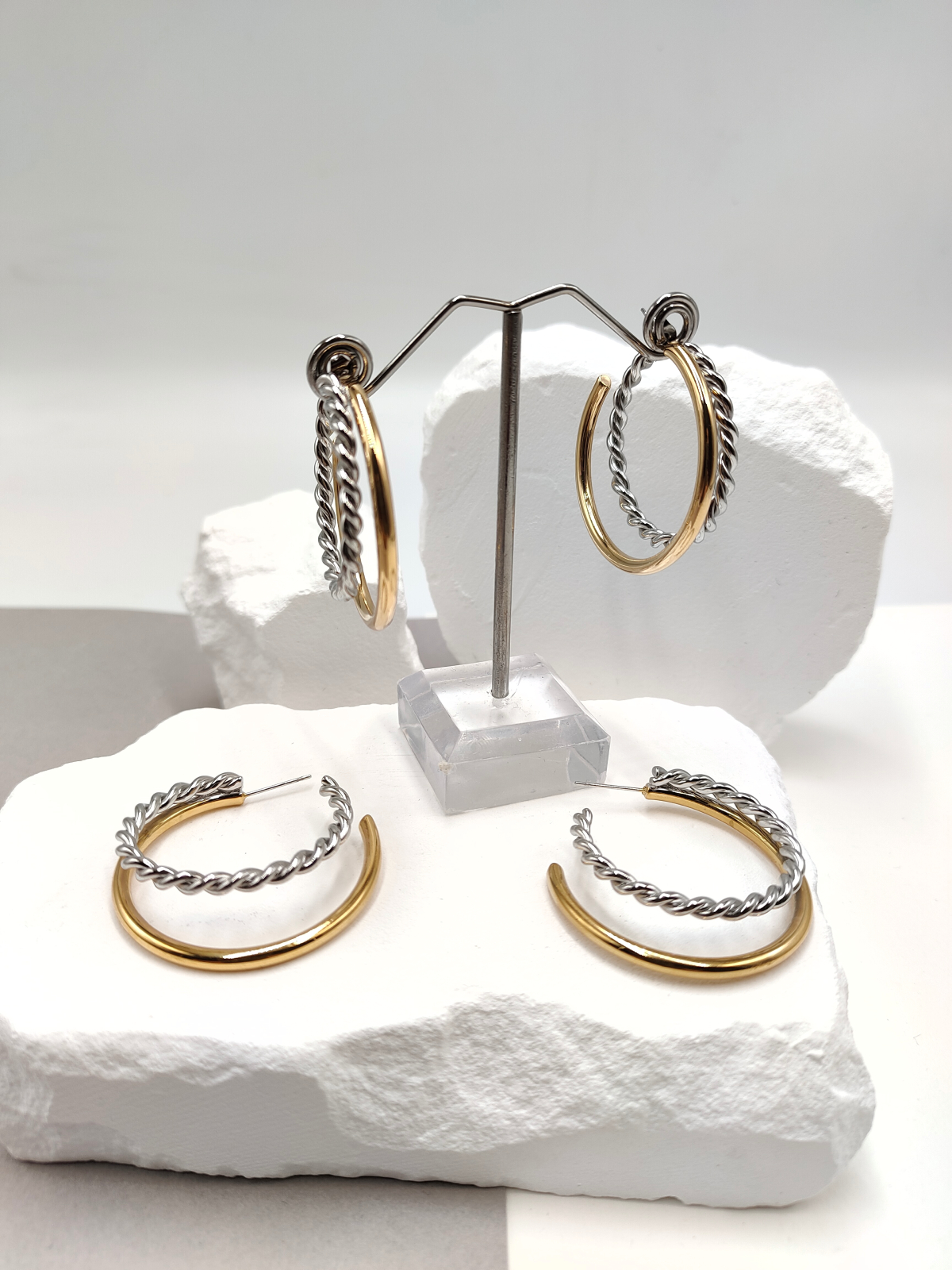 Σκουλαρίκια ατσάλινοι διπλοί κρίκοι, με χρυσό και ασημί χρώμα.