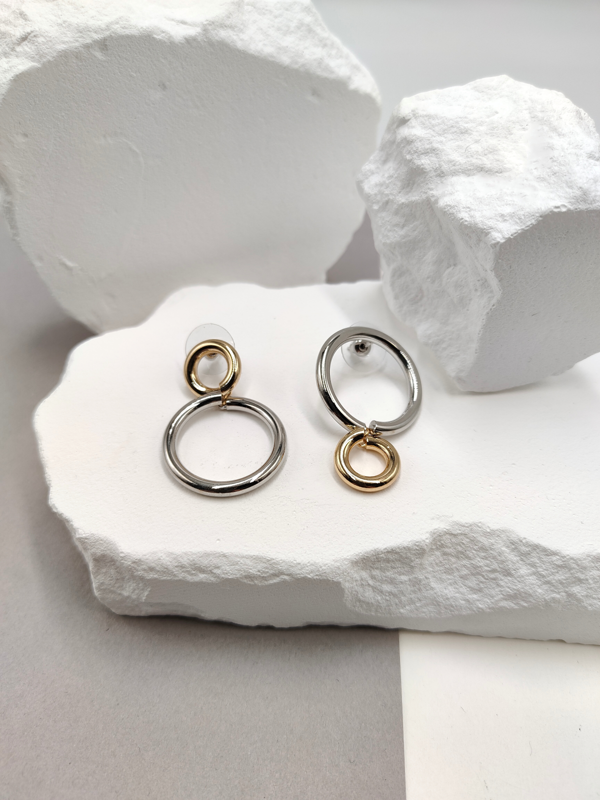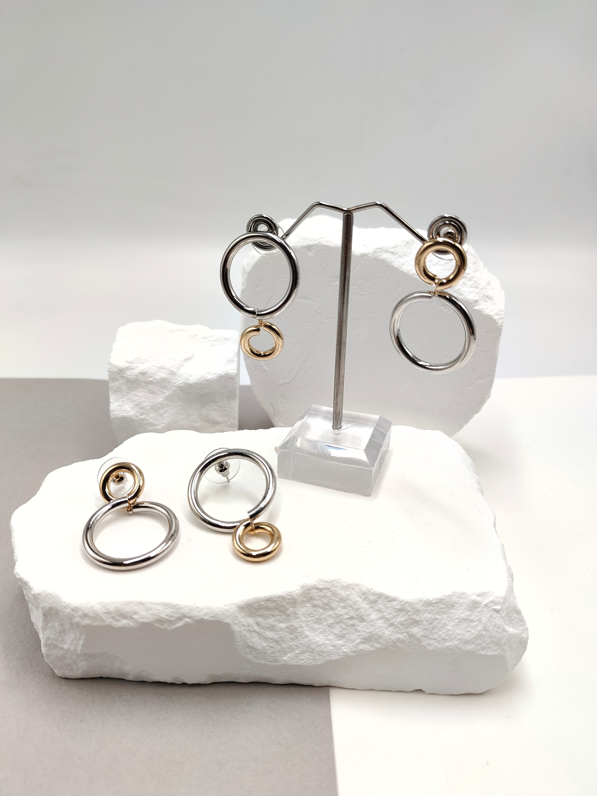 Σκουλαρίκια ατσάλινοι κύκλοι με διαφορετικά μεγέθη, σε χρυσό και ασημί χρώμα.