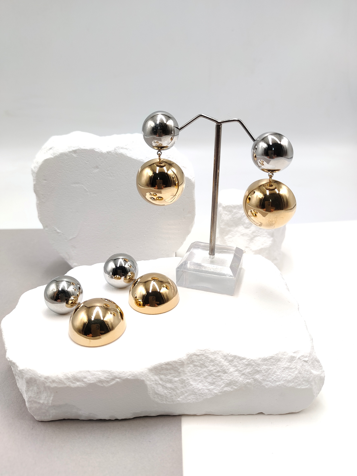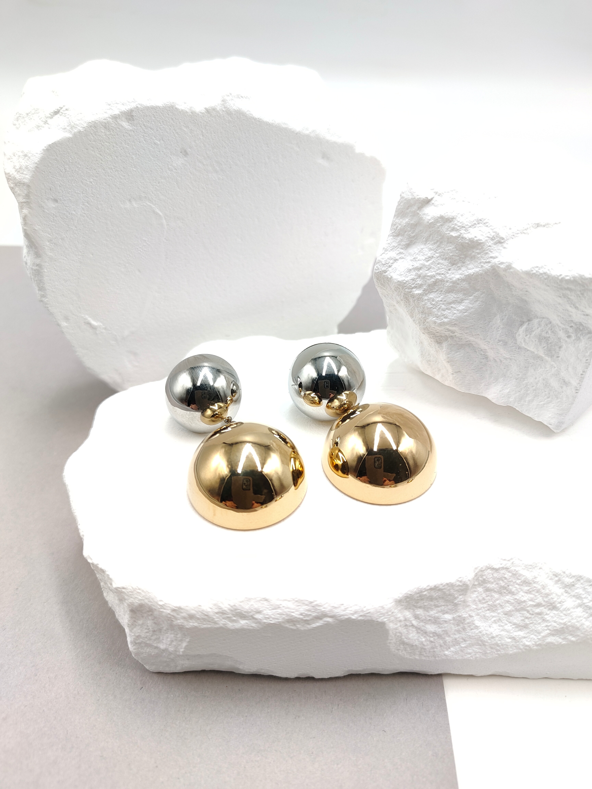 Σκουλαρίκια ατσάλινα με πομπέ κύκλους σε χρυσό και ασημί χρώμα.